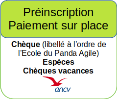 - Si inscription avec paiement en ligne jusqu’à 1 semaine avant le stage, saisir le code promo PANDA04 pour bénéficier d’une remise en 20%.